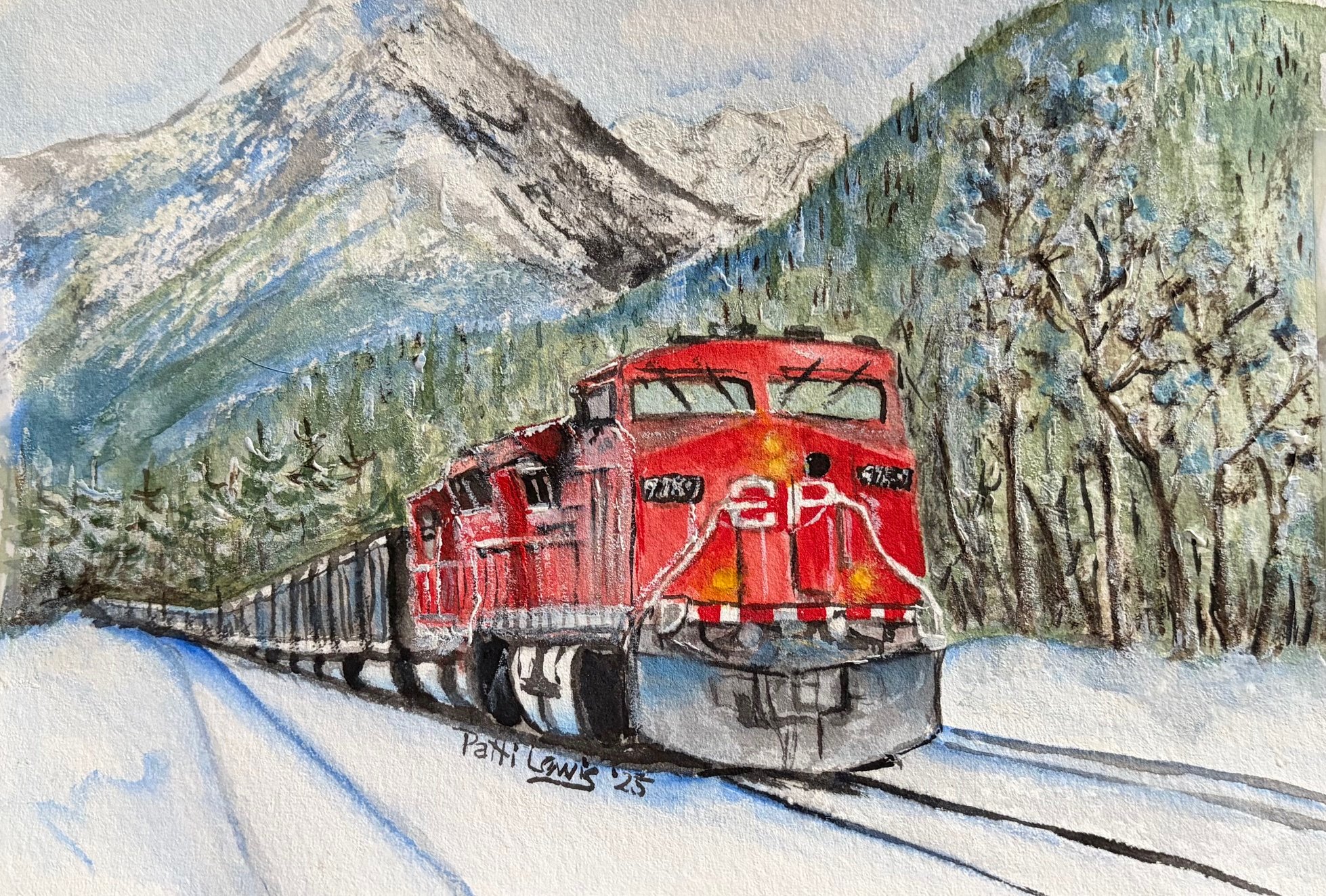 The following original paintings or reproductions in the form of prints, art cards, coasters, magnets, mugs, ornaments, or tote bags may be available for purchase by hitting the Contact button above.